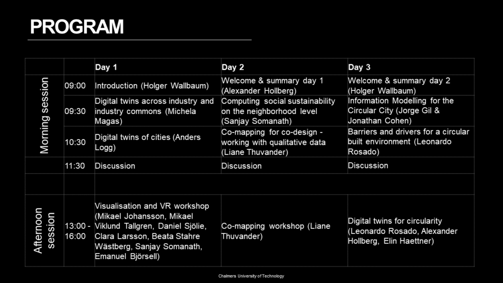 The Digital Twin Cities Centre and Chalmers University offer a free 3-day advanced course with a focus on digital twins to support sustainable built environments.