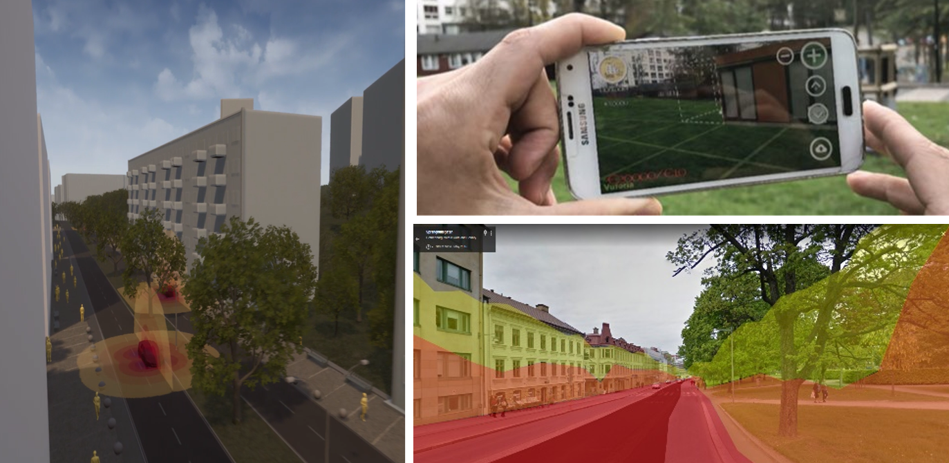 Urban planning and design deal with complex problems - creating liveable, inclusive and environmentally adapted cities – which requires collective knowledge. Hereby, it is necessary to communicate and collaborate with different stakeholders. Digital 3D-models with a high degree of interactivity offering advanced simulation and visualisation can facilitate this. Key questions here are how to integrate, model and visualise both qualitative and quantitative data in a digital twin to represent social and environmental parameters influencing urban qualities that affect humans in development and transformation projects. Further questions concern the appropriate level of data visualisation and abstraction of representation without losing richness of information, not at least in relation to collaborative learning potentials and targeting different stakeholder groups. Finally, questions of what types of visualisations and media provide good understanding of space and spatial perception need to be explored.